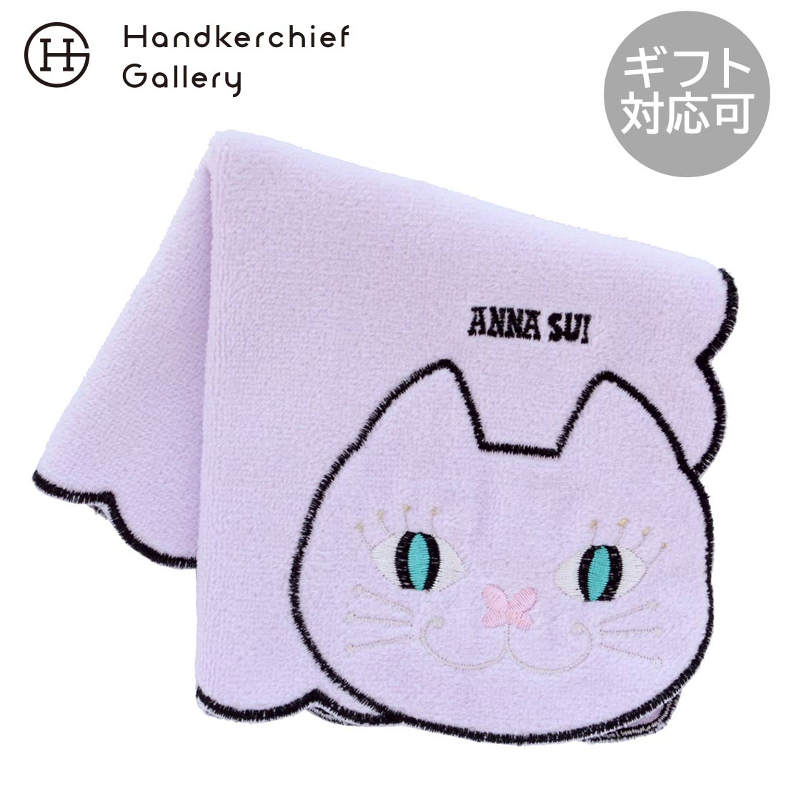 ■アナ スイ タオルハンカチ ネコ刺繍 パープル 【アナスイ ANNA SUI】