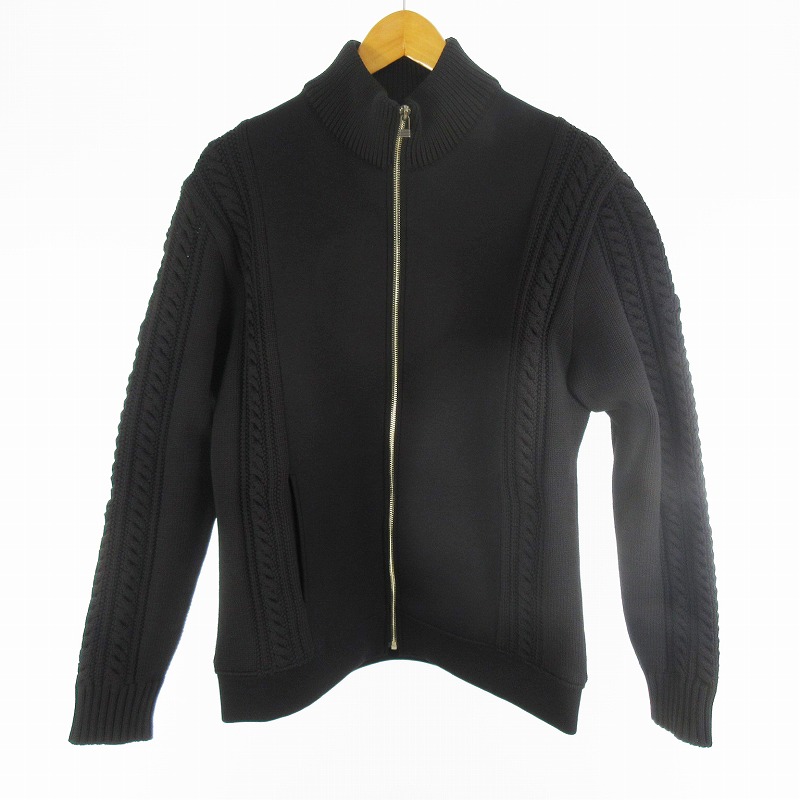 ■【中古】未使用品 アラミス ARAMIS ジップアップ スウェット ジャケット ケーブルニット 切り替えし 黒 ブラック L