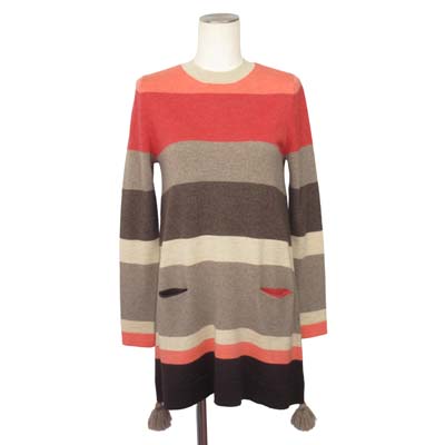 ■【中古】アラミス ARAMIS チュニック ニット ボーダー タッセル ウール 38 オレンジ レディース
