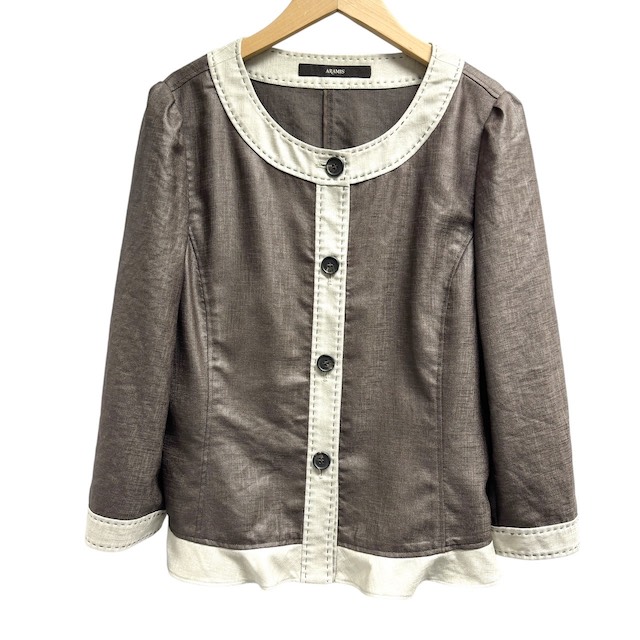 ■【中古】アラミス ARAMIS 長袖ノーカラージャケット ブラウン アイボリー 42 XL相当 レディース