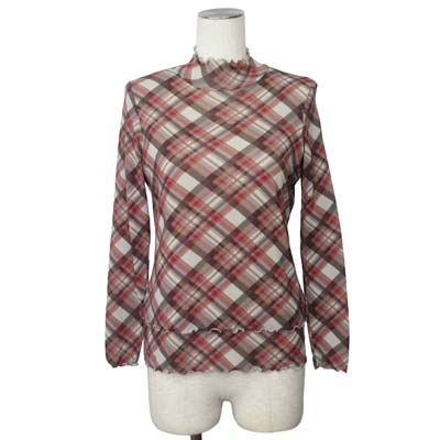 ■【中古】アラミス ARAMIS カットソー ハイネック シアー メロウフリル チェック 38 ベージュ レディース