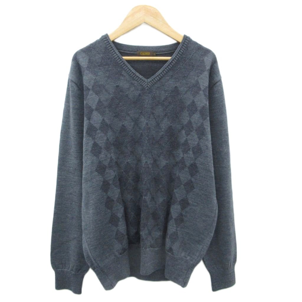 ■【中古】アラミス ニット セーター ウール L チャコールグレー アーガイルチェック柄 Vネック 長袖 /HO29 ■GY61