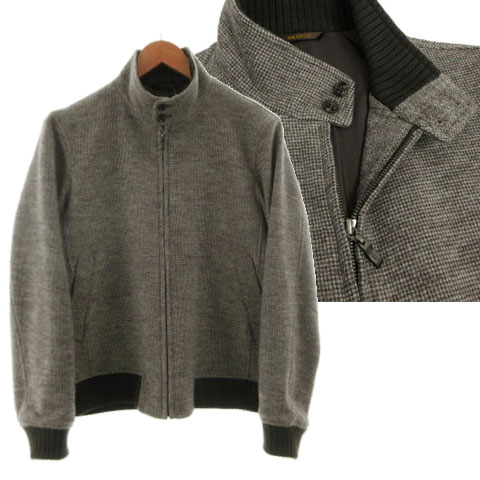 ■【中古】アラミス ARAMIS ドッグイヤーブルゾン ジャンパー 1953095 ジップアップ 起毛 ウール 総柄 ブラウン オフ白