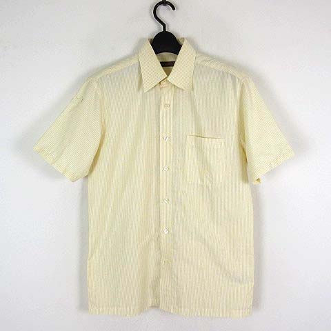 ■【中古】アラミス ARAMIS シャツ カジュアルシャツ 半袖 ストライプ 総柄 M 黄色 イエロー 白 ホワイト メンズ