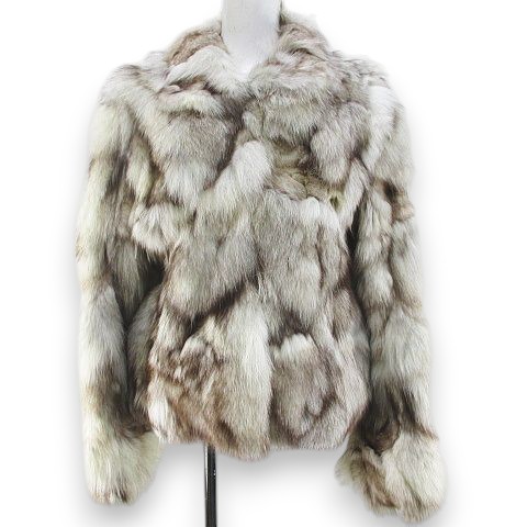 ■【中古】アラミス ARAMIS 毛皮 フォックス ファー ジャケット コート ショート 38 ブラウン ホック 裏地 レディース