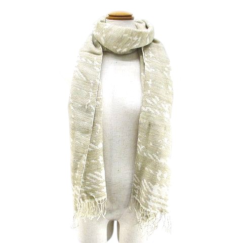■【中古】未使用品 アラミス ARAMIS マフラー ストール F ベージュ系 イタリア製 フリンジ 毛 ウール 総柄 タグ付