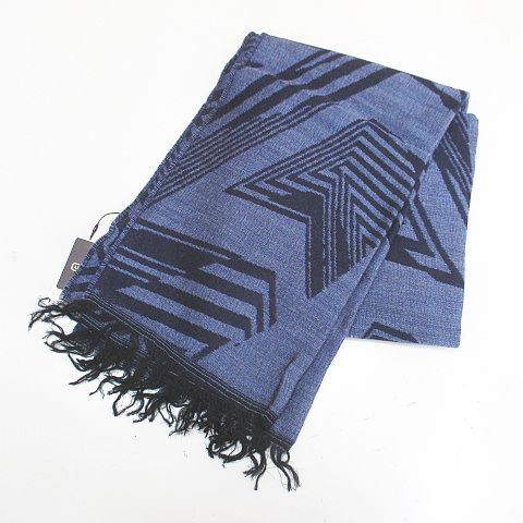 ■【中古】未使用品 アラミス ARAMIS マフラー ストール F 紺系 ネイビー イタリア製 フリンジ 毛 ウール 総柄 タグ付