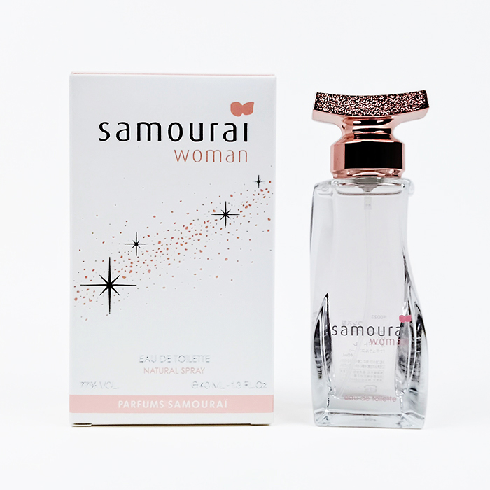 サムライウーマンがリニューアル! ピンクメタリックのパッケージに合わせて、香りもほんのり大人っぽく。トップはグリーンティーやカルダモンのフレッシュな香りがグレープフルーツやダンジェリンに重なり合い、爽やかな印象に。ミドルはジャスミンやローズなどのフローラルがピーチのジューシーな香りと調和し、優しい香りへと変化します。ラストはムスクやシダーウッドの温