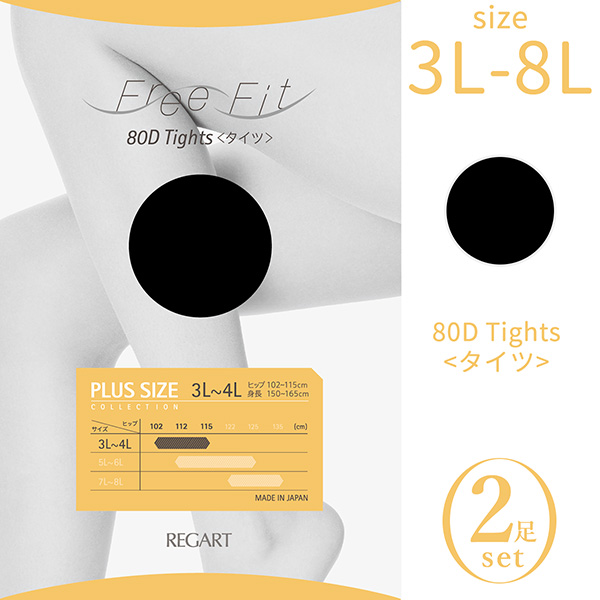 ■【2足セット】大きいサイズ タイツ レディース Free Fit ゆったりタイツ 80デニール (FFT-201) 1足‐3L 4L 5L 6L 7L 8L 抗菌防臭 股ずれ