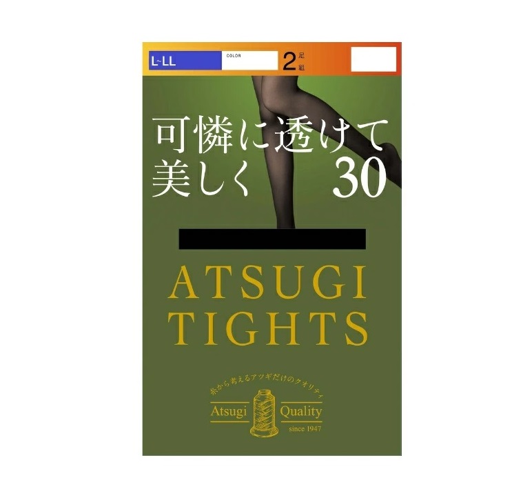 ■アツギ タイツ 可憐に透けて美しく 30デニール L-LL ブラック(2足入)