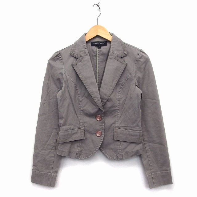 ■【中古】ジルスチュアート JILL STUART テーラード ジャケット デニム グログランテープ スリット S グレージュ /HT29