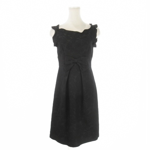 ■【中古】未使用品 ジルスチュアート JILL STUART ワンピース 2 黒 ブラック フリルスリーブ リボン付き ジャカード