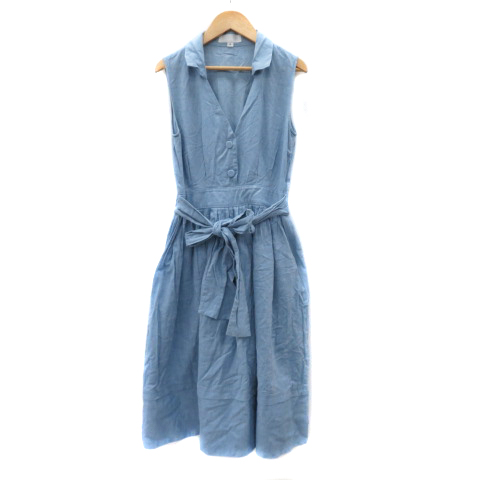 ■【中古】ジルスチュアート ノースリーブワンピース ウエストリボン 麻 リネン混 2 ライトブルー レディース
