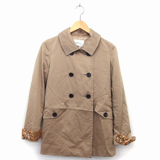 ■【中古】ジルスチュアート JILL STUART ステンカラー コート ミディ丈 ダブル 無地 装飾 スリット 綿混 M ブラウン 茶