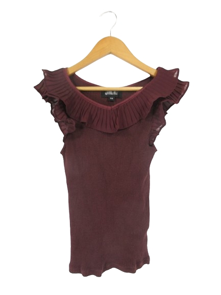 ■【中古】ジルスチュアート JILL STUART ニット カットソー ノースリーブ リブ フリル サイズFR ボルドー QQQ レディース