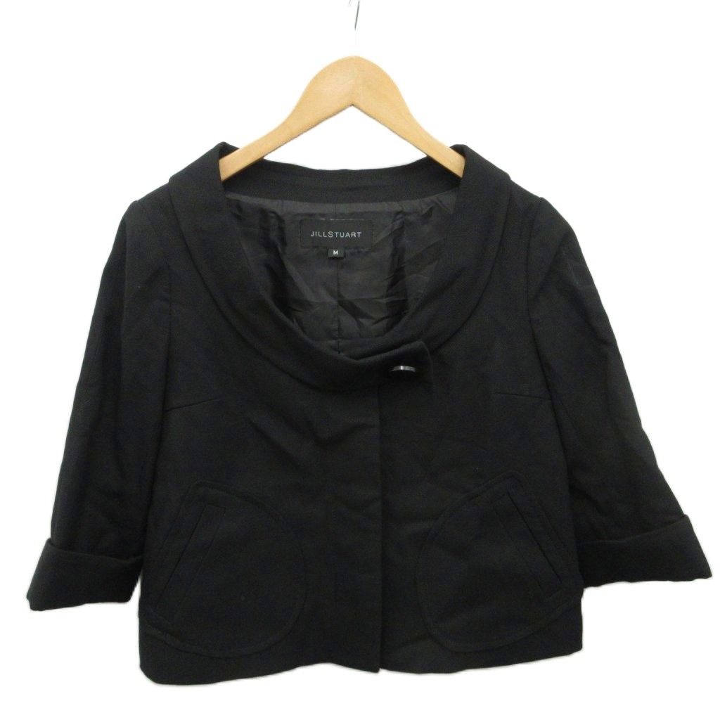 ■【中古】ジルスチュアート JILL STUART ノーカラージャケット ブレザー ブルゾン M 黒 ブラック 092-250014 ■YHS10