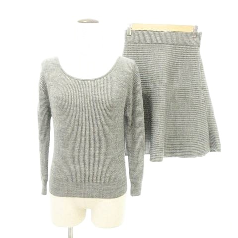 ■【中古】ジルスチュアート JILL STUART ニット セットアップ 長袖 ミニスカート フレア Mサイズ グレー レディース