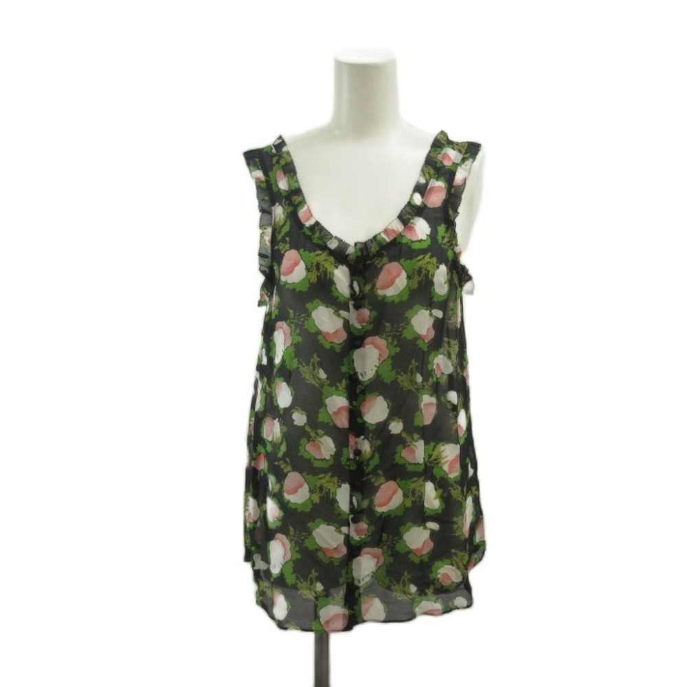 ■【中古】ジルスチュアート JILL STUART ノースリーブ シャツ ブラウス 絹 シルク S マルチカラー 花柄 Vネック