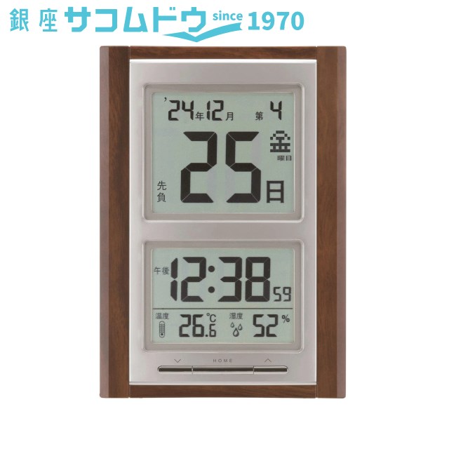 ■機能 電波時計 アラーム スヌーズ 日付表示 温度表示 湿度表示 六曜表示 第何曜日表示 置き掛け兼用 ■商品サイズ/ 商品重量 高:235mm×幅:165mm×奥行:30mm/387g ■材質 ABS樹脂 ■電源 単3電池×3(付)