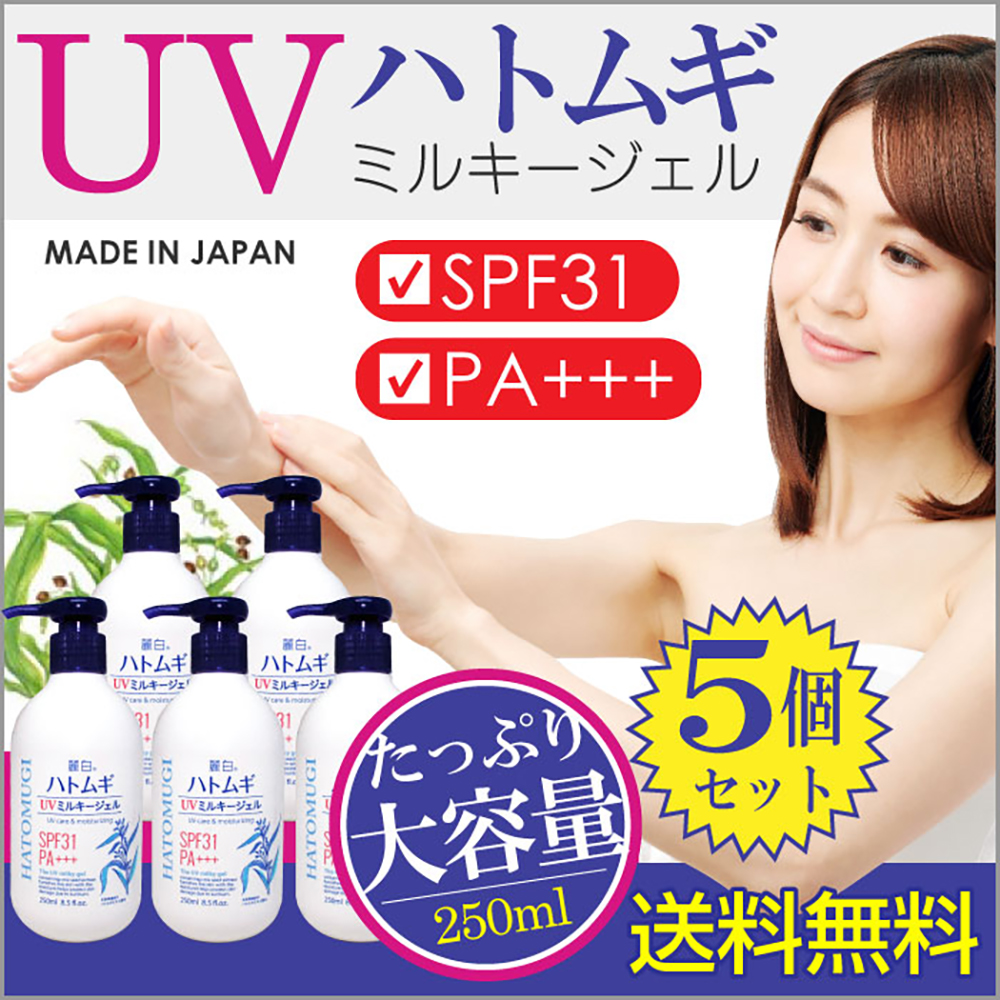 ■日焼け止め UVジェル 250ml 麗白 5個 計1250ml ハトムギエキス配合 SPF31 PA 大容量サイズ はとむぎ 日本製 送料無料