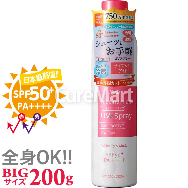 ■アジャステ エアリータッチ UVスプレー ナイアシンアミド 200g(320mL) SPF50+ PA++++ 日本製 Ajuste ホワイトリリー&ムスクの香り シミ