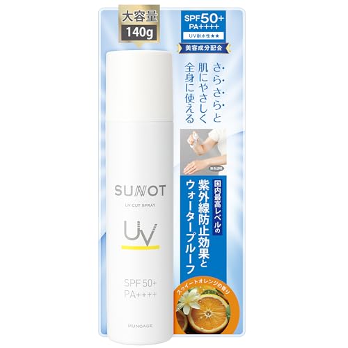 ■サンノット UVカットスプレー [SPF50+/PA++++/UV耐水性] 140g 大容量ボトル 日焼け止め 全身用 髪 体 顔 セラミド 石