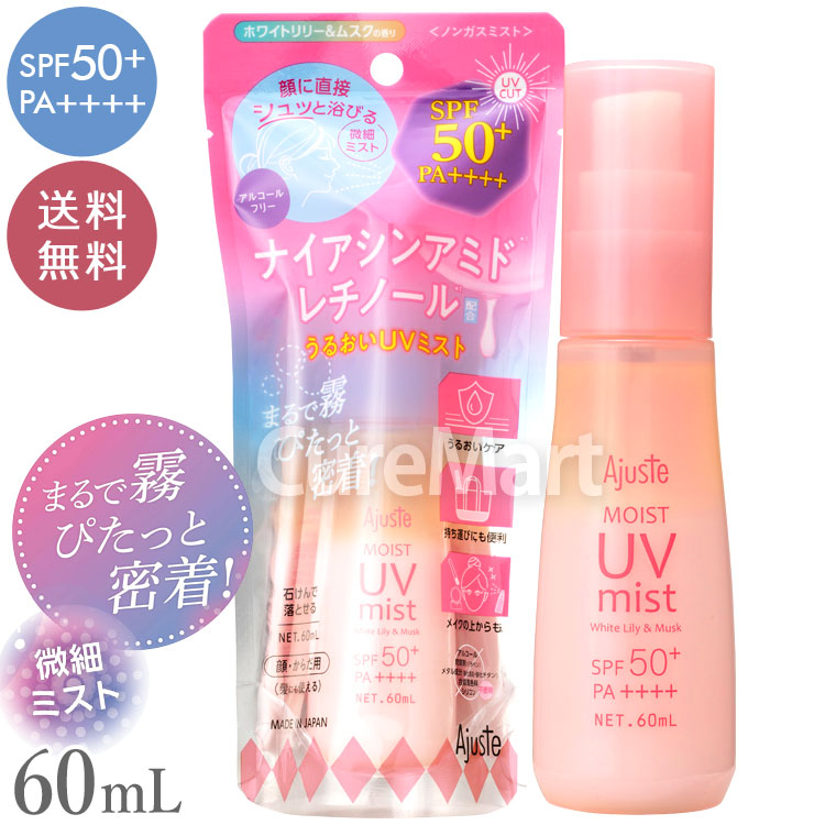 ■送料無料/ アジャステ ナイアシンアミド レチノール うるおいUVミスト 60mL ホワイトリリー&ムスクの香り SPF50+ PA++++ 透明仕上げ メ