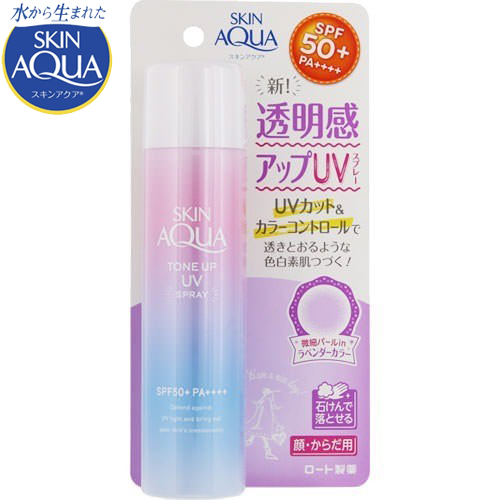 ■スキンアクア トーンアップUVスプレー SPF50+/PA++++ 70g *ロート製薬/ラベンダーカラーの日やけ止めスプレー/UVカットしながら色と光を
