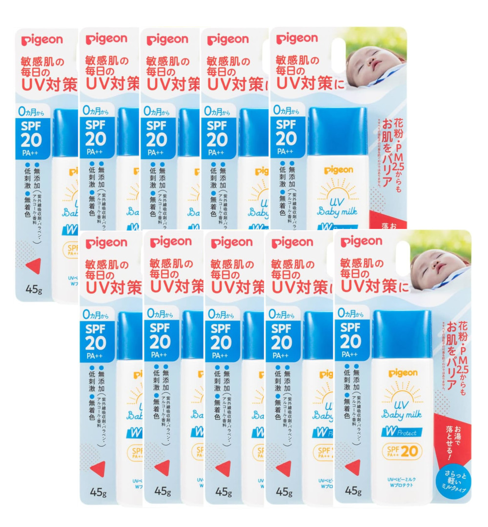 ■ピジョン Pigeon UVベビーミルク Wプロテクト SPF20 45g×10【10個セット】【ネコポス】 子供 日焼け止め レジャー お出かけ