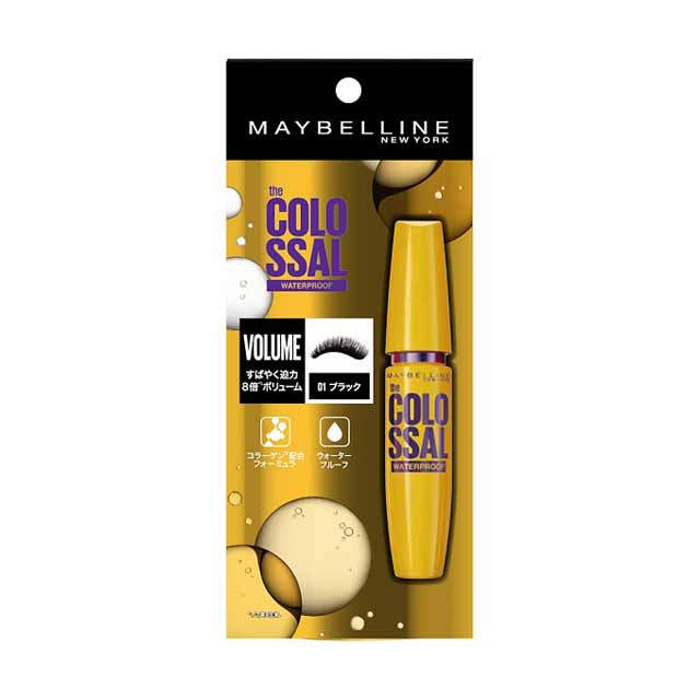 メイベリン ニューヨークの人気ボリューム マスカラ。 コラーゲン(*1)2倍(*2)増量。まつ毛1本1本をよりふっくら太く、濃く見せるから、史上最高(*3) の8倍(*4)マグナムボリュームを実現!メガスプーンブラシ採用で、ひと塗りでまつ毛にたっぷり液がつくのに、ダマにならずに、1本1本美しい仕上がりですばやくインパクトのある大きな目元に。にじみにくく、水・汗・涙に強いウォータープルーフタイプ。*1 水溶性コラーゲン。スムースサポート成分。*2 ボリューム エクスプレス マ