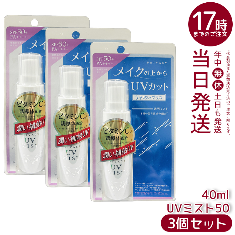 ■3 個セット プライバシー UVミスト50 40ml 黒龍堂 日焼け止め UVカットUVミスト UV サンケア SPF50+ PA++++ 紫外線 顔 からだ用 全身UVカ