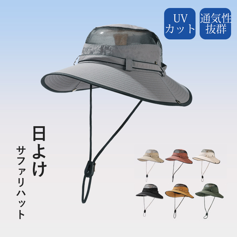 ■UVカット 帽子 サファリハット メンズ サンバイザー 紐付 紫外線対策 日焼け止め フェイスガード UVケア 登山帽子 サファリ
