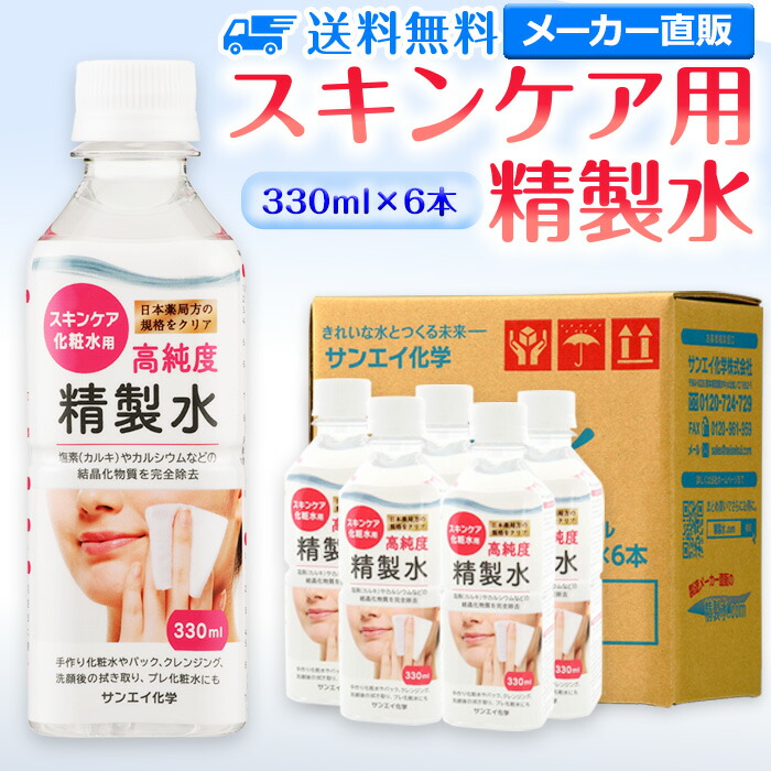 ■精製水 化粧用 330ml サンエイ化学 精製水 スキンケア用 精製水 330mL × 6本セット パック メイク プレ化粧水など