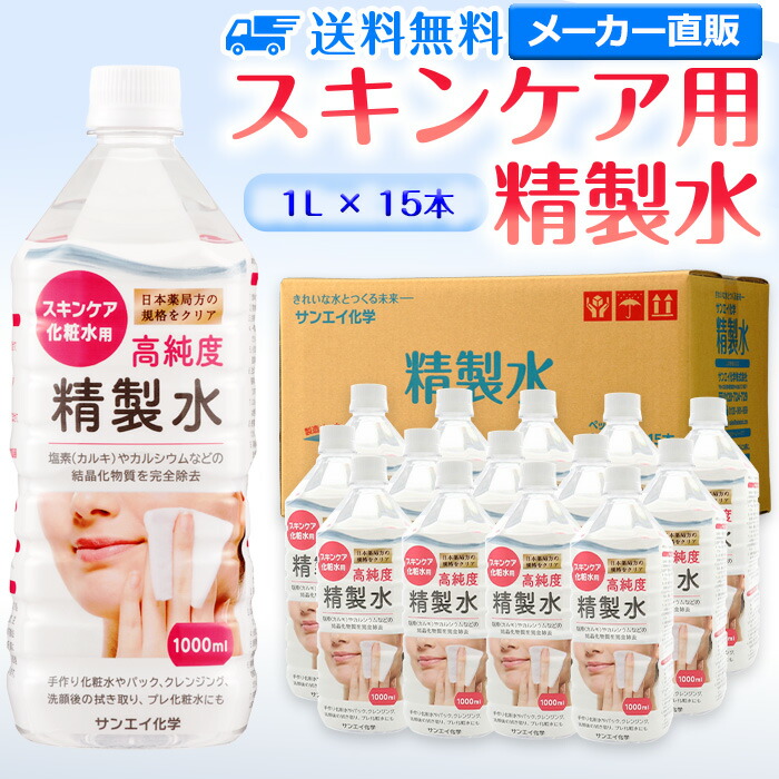 ■精製水 化粧用 1l サンエイ化学 精製水 スキンケア用 精製水 1L × 15本セット パック メイク プレ化粧水など