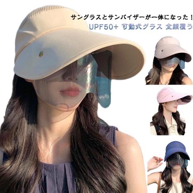 ■フェイスカバー サングラス サンバイザー帽子 サンバイザー 車 ワイドバイザー UPF50+ レディース 折り畳み UVカット 日よけ帽子 レディ
