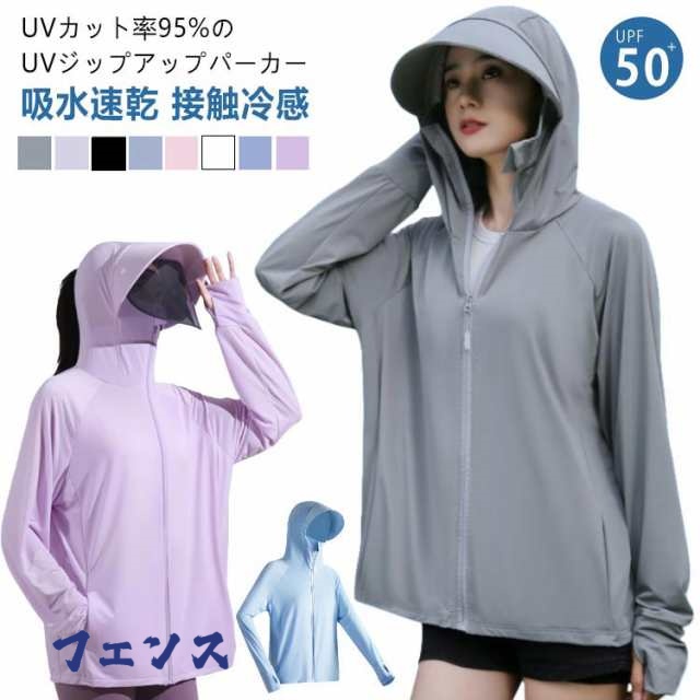 ■パーカー UVカット率95%以上 マスク UV 冷感 レディース アウター ラッシュガード つば UVカット 指穴 UPF50+ 長袖 薄手 サンバイザー 取