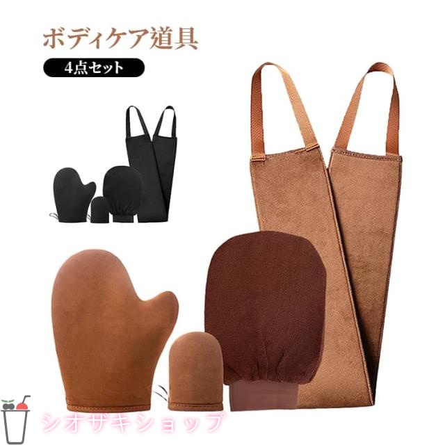 ■背中に薬を塗る道具 背中にクリームを塗る道具 軟こう塗布ベルト 角質ケア手袋 ボディクリーム塗布手袋 ミニ塗布手袋 4点セット 背中 軟
