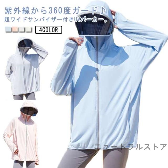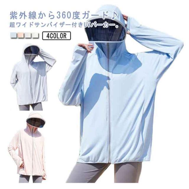 ラッシュガード UVカット パーカー レディース UPF50+ ワイド サンバイザー付き 冷感 日焼け止めパーカー 指穴 薄手 羽織 長袖 UVケア 紫外線対策 パーカー 春夏 通気 着痩せ 吸湿速乾 自転車 通学 通勤 ゴルフ アウトドア スポーツ