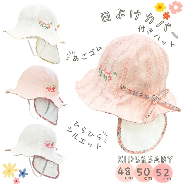 ■HB 日よけカバー付き ひらひらハット ベビー キッズ 48〜52cm あご紐付き キャペリンハット チューリップハット かわいい キュート コッ