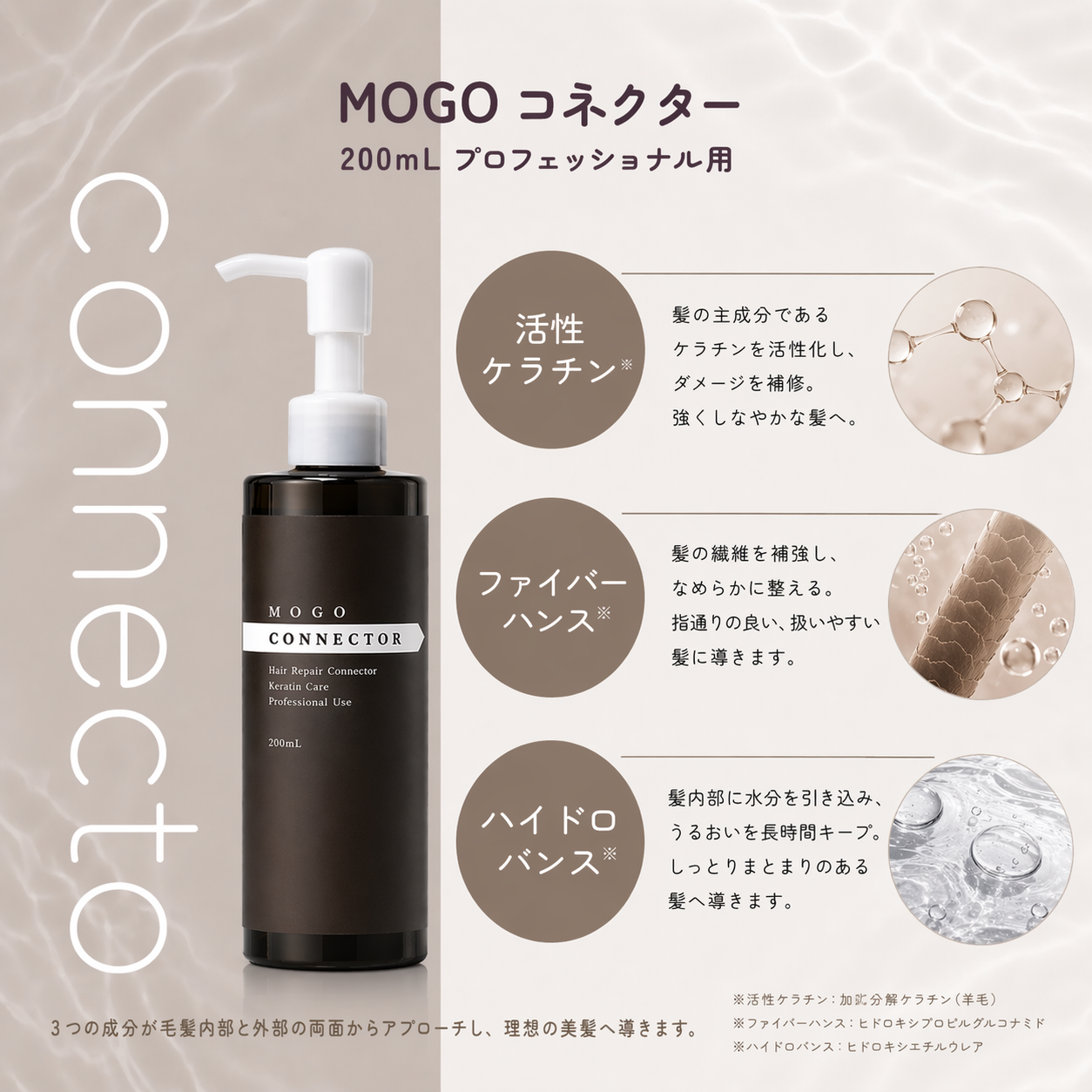 ■MOGOコネクター 200ml 活性ケラチン集中ケアトリートメント ケラチン 活性ケラチン ファイバーハンス ハイドロバンス 集中トリートメント