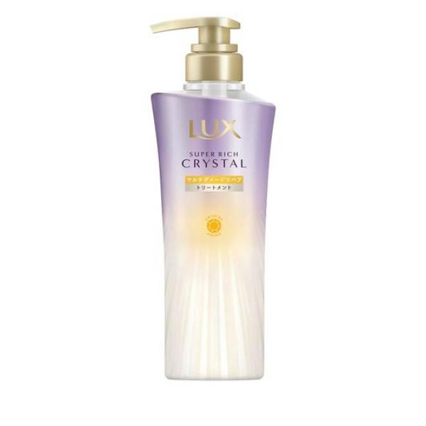 ●LUX SUPER RICH CRYSTAL ラックス スーパーリッチクリスタル マルチダメージリペア トリートメント●瞬間。クリスタルツヤ髪へ。●蓄積ダメージ髪向け。傷んだツヤなし髪を、光をふりまくツヤ満ち髪へ。●アミノ酸(補修・保湿成分)を含んだ処方が髪の深層部にまで高浸透し、7つの蓄積ダメージ(*1)を集中補修します。●約1/700(*2)極小クリスタルアミノ(*3)配合処方。●ヒートアクティブ成分(*4)配合。ドライヤー等の熱に反応する毛髪保護成分。ベールを形成しなめらかな髪へ導きます。●クリスタルアルガンオイル(*5)配合。外部刺激(熱/UVによる乾燥/摩擦)から髪を守る成分です。●優雅なスズラン&ジャスミンの香りです。●クリスタルアミノ(*3)を含む17種のアミノ酸(*6)配合。●パラベン無添加。●販売名:ラックスSCDヘアトリートメントA[*1 UV・摩擦・カラー・ブリーチ・パーマ・乾燥・熱][*2 キューティクルの厚さとクリスタルアミノの分子サイズの比較][*3 補修成分:セリン][*4 毛髪保護成分:メドウフォーム-δ-ラクトン][*5 毛髪保護成分:アルガニアスピ