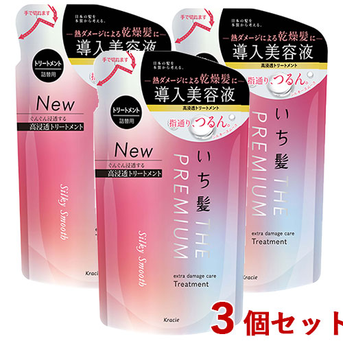 ■いち髪 プレミアム THE PREMIUM エクストラダメージケアトリートメント シルキースムース 詰替用 340g×3個セットつめかえ 詰め替え Ichi