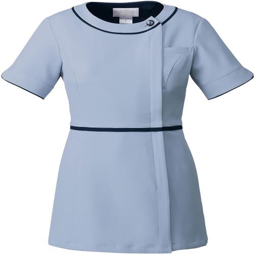 ■[フォーク] スクラブ チュニック 医療白衣 トップス ナース 吸汗速乾性 介護 看護 病院 7056SC レディース エリンジウム L (日本サイズL