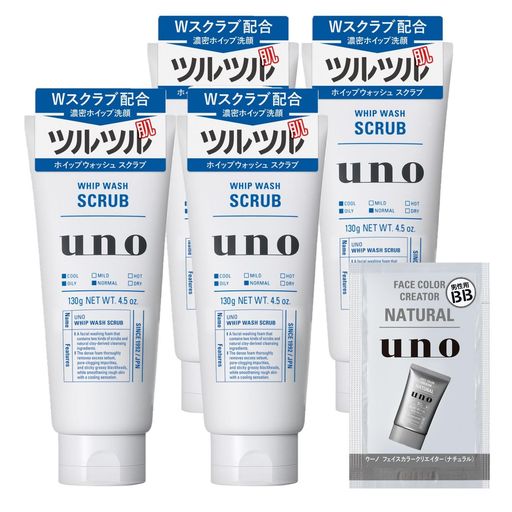 ■UNO(ウーノ) 【まとめ買い】ホイップウォッシュ (スクラブ) 洗顔料 130G ×4個 +おまけ メンズ 泡 洗顔 毛穴 汚れ ざらつき クール ツル