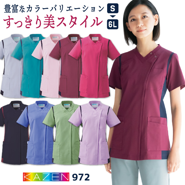 ■カゼン レディース 前開き スクラブ ジャケット 白衣 医療 ナース服 看護師 介護士 薬剤師 歯科衛生士 理学療法士 整体師 クリニック 病