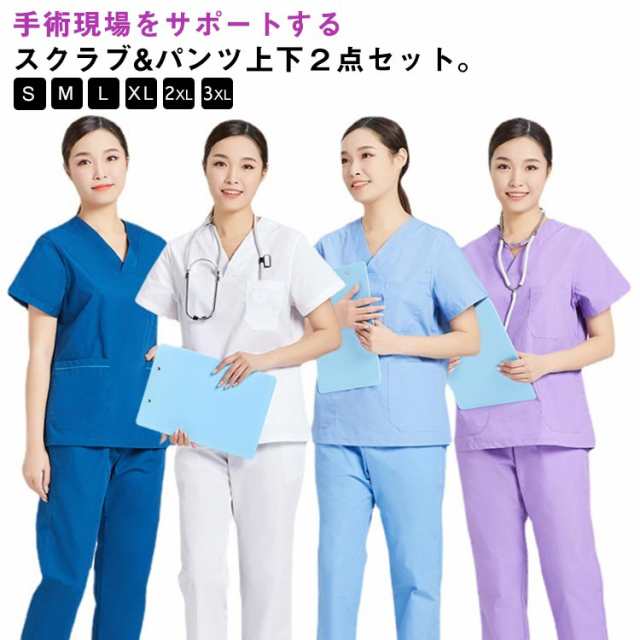 スクラブ 上下セット レディース メンズ 男女兼用 白衣 パンツ ズボン 医療 ナース服 医療用 女性 男性 看護師 ナース 介護士 ユニフォーム 大きいサイズ 医師 手術着 制服 介護服 介護 半袖 ナースウェア 受付 エステ