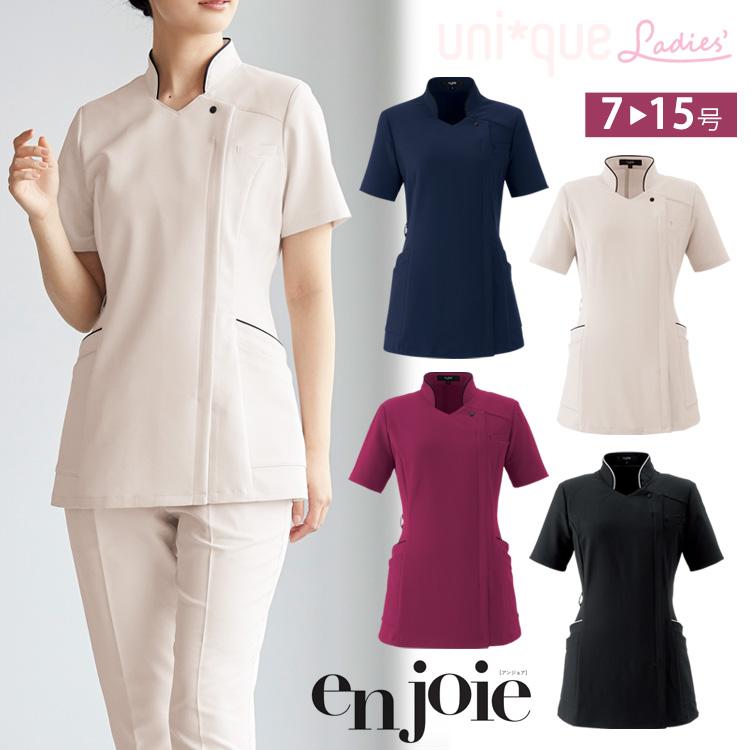 ■アンジョア レディース 半袖 スクラブ トップス カットソー 42080 透けにくい 美容 エステ ネイルサロン 医療 ユニフォーム クリニック