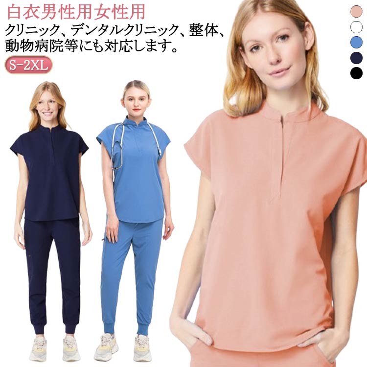 ■ナース服 スクラブ 白衣 レディース 上下セット セットアップ 女性用 半袖 制服 看護師 介護士 病院 無地 医者 快適 春秋 夏物 大 洗える