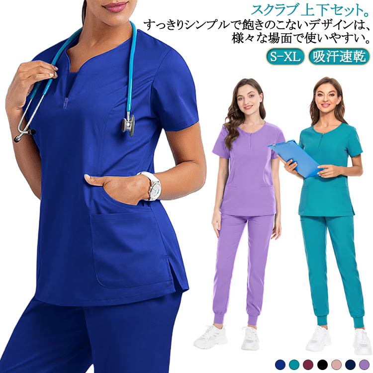 ■半袖 スクラブ ズボン ユニフォーム 吸汗 看護師 スクラブ 上下セット 大きいサイズ 制服 医療白衣 メンズ レディース ナース服 作業服