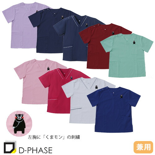 ◎商品名:男女兼用スクラブ◎メーカー:ディーフェイズ(D-PHASE)◎品番:DS-2001K◎カラー:インディゴブルー、ロイヤルブルー、ヴィンテージワイン、フレンチピンク、エメラルドグリーン、イングリッシュラベンダー、マリンホワイト、インディゴフレッシュ、マリナーラワイン◎サイズ:SS、S、M、L、LL、3L◎商品説明:人気のキャラクタースクラブ「くまモン」の刺繍入り。左胸に聴診器を下げたくまモンの刺繍が入っています。親しみやすい印象を抱かせることができ、子どもたちとのコミュニケーションをお手伝いしてくれます!両脇にスリットも入っているので動きやすいデザインになっています。◎素材:ポリエステル65%、綿35%◎仕様:前:左胸ポケット、右肩ドットボタン留め、左右ポケット、両脇スリット(約9cm)、裏地なし◎サイズ区分:ユニセックス 男女兼用◎シリーズ:D-PHASEスクラブ◎備考:女性が着用される場合は1サイズ小さいサイズをお選びください。◎よく使われるシーン:病院、クリニック、病棟、医院、外科、内科、耳鼻科、眼科、整形外